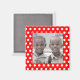 Pontos brancos em um fundo vermelho brilhante fazem o quadro para sua própria foto digital favorita neste ímã impresso personalizado. Certifique-se de substituir a imagem do marcador de posição central por sua própria foto digital carregada para fazer do seu ímã uma marca especial. Esse design foi feito especificamente para os ímãs quadrados, mas também pode ser usado no tipo redondo. No entanto, o recorte do centro "quadro" continuará a ser um quadrado.