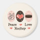 Um símbolo de paz, rosa e marrom, bonito e esportivo, um disco de coração e hóquei com estrelas e polk um ponto em t-shirts, camisetas e mais mercadoria de roupa e hóquei. Um presente bonito para uma equipe de hóquei, jogador de hóquei, fã de hóquei de treinador de hóquei ou mãe de hóquei.