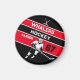 Personalize este ímã de hóquei com o nome da sua equipe, o nome e o número do seu jogador Não introduza nenhum nome ou número se não quiser um nome ou número