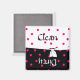 Íman de máquina de lavar bolinhas bonito, com bolinhas brancas e cor-de-rosa, no topo, e um preto com bolinhas cor-de-rosa, no fundo. Gráficos de uma fita branca, no meio. O texto branco lê Sujo e preto lê Limpar. Faz um presente de anfitriã excelente.