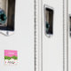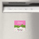 Íman de máquina de lavar louça, verde e rosa, limpo/sujo. Um fundo cor-de-rosa sólido, no topo, e um padrão de bolinhas rosa e verde, na parte inferior do ímã separado por uma fita e um arco verdes, correndo pelo meio. O texto preto lê Sujo e branco lê Limpar em extremidades opostas. Faz um presente de anfitriã excelente.