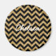 Hip e Trendy Chevron Glitter Look Magnet. Este íman legal apresenta um padrão de zag em forma de guiões em cima de um fundo de brilho dourado da arte digital. Adicione texto a este design para lhe dar um toque pessoal.