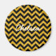 Hip e Trendy Chevron Glitter Look Magnet. Este íman legal apresenta um padrão de zag em zague em forma de guiões em cima de um fundo brilhante de arte digital amarelo. Adicione texto a este design para lhe dar um toque pessoal.