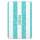 Tendência e diversão com brilho de brilho Glitter Olhar Stripes Premium Magnet. Este design apresenta um padrão de risca de aparência brilhante e falsa em turquesa. Adicione texto a este design para lhe dar um toque pessoal.