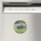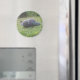 Este ímã mostra uma fotografia de um pombo selvagem tirada no meu quintal. O pássaro estava bicando na grama à procura de sementes que tinham sido derrubadas de um alimentador de pássaros. Ao abaixar a cabeça para bicar, fechou o olho e, como resultado, parece que está dormindo.
