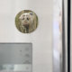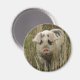 Este ímã apresenta uma bela fotografia de um porco rosa pinto-pinto giro emergindo de uma erva alta.