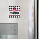 Um ímã para professores com um fundo de bolinhas negras. Texto personalizável. Logotipo da escola cor-de-rosa no centro.