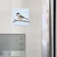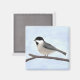 Magnet com a minha ilustração digital original de aquarela de um Chickadee com prego preto empoleirado num galho sem folhas contra um céu azul pálido.