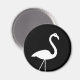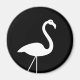 Um flamingo branco brilhante sobre fundo preto, acentua este ímã, fazer-o divertido e verão.