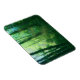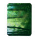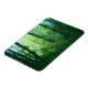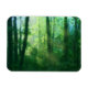 Raios do sol matinal a correr para uma brilhante floresta de Verão verde, com árvores maciças cobertas de mariposa e um espesso cobertor de mato. Uma fotografia manipulada digitalmente para dar às videiras sobrecultivadas, névoa azul-esverdeada, raios-deus ouro e árvore primavera-verde deixam uma qualidade de sonho.
