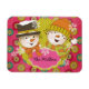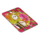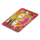 Um casal de boné de neve, chapéu de inverno, lenço listrado e nariz de cenoura sobre um fundo de rosa quente com órbitas de flocos de neve e bolinhas na mostarda com flocos de neve de branco e uma faixa rosa que você pode facilmente personalizar com um nome!