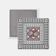 Esse quadrado concêntrico apresenta padrões geométricos simples em tons de cinza e vermelho com as cores nas camadas alternadas ao passar da vertical para a horizontal.