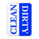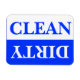Magneta limpa e suja da máquina de lavar louça em azul