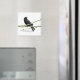 Um ímã com um corvo sentado num galho. As palavras "Senhora Louca" estão por baixo.