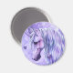 Um unicórnio maravilhoso contra uma lua roxa.