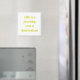 O ímã inspirador diz: "A vida é uma viagem, não um destino." Letras amarelas sobre fundo branco. Íman quadrado.