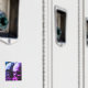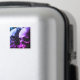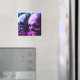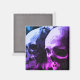 Um design de ímã de geladeira usando crânios com esquema de cor roxo/azul.