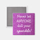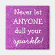 Este pequeno ímã fofo lembra-vos que "Nunca deixes que NINGUÉM enrole o vosso brilho!" com um fundo brilhante e roxo.