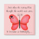 Uma bela citação motivacional da borboleta em vermelho num ímã. "Quando a lagarta pensava que o mundo tinha acabado, ela se tornou uma borboleta."