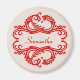 Magneta elegante e sofisticada para o Damasco Chic, com fundo bege suave e embelezamento na moda, floresce em vermelho escuro. Esta design moderna é fácil de personalizar com o seu próprio texto. Clique em "Personalizar" para encontrar mais opções de personalização.