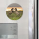 Imagem redonda com dois cavalos selvagens Konik a dançar ao pôr do sol no Parque Nacional Oostvaardersplassen, nos Países Baixos.