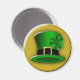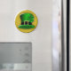 Dia de Patrick da rua: Leprechaun Hat - LEHA100 © Sunny Mars Designs. Este ímã redondo apresenta um duende verde que uma banda preta ao seu redor, uma fivela de ouro e uma pedra de xamelo acoplada a ela.