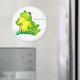 Um grande ímã redondo com um sapo verde giro, "gribbet, gribbet...", de uma ilustração de aquarela feita por Judy Adamson. Este design também ajustado chaveiros, botões e adesivos.