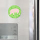 Este ímã apresenta um porco rosa estilo cartoon. Tem a cabeça baixa pronta para engolir qualquer comida que encontrar. O fundo é uma mistura de diferentes tons de verde para criar a impressão de grama.