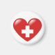 Magnet com ilustração de forma cardíaca com as cores da bandeira suíça, com destaque de aparência e reflexão 3D. Opções de formas e tamanhos.