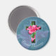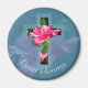 Bênçãos de Páscoa incríveis ao redor de ímã com lindas flores rosa de Hibiscus sobrepostas com cruz azul com toques tropicais. Você também pode gostar das muitas designs de hibisco cristão disponíveis na minha loja. Fotografia original e design do Anura Design Studio.