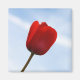 Tulipa vermelha brilhante contra um céu azul claro.