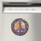 Este sinal de paz tem um fundo de corante de gravata e apresenta corações, flores e floresce. Compartilhe um pouco de paz com o mundo exibindo este ímã colorido.