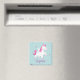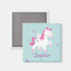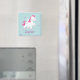 Magnet Personalizado com um unicórnio mágico e bonito voando no céu com estrelas roxas. Design de graça e divertida para uma garota que ama unicórnios e pôneis mágicos. Presente monograma personalizado.