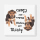 Este ímã da máquina de lavar louça apresenta um adorável filhote de German shepherd com texto que diz: "Os pratos estão sujos". Vire este ímã de cabeça para baixo e a mesma imagem aparece com este texto: "Os pratos estão limpos". Excelente para esse amante de os animais na sua vida! Este design é protegido por direitos autorais e não pode ser copiado ou redistribuído. Para obter informações sobre este ou outros designs nesta loja, ou se você precisar de assistência com personalização, use o recurso enviar mensagem anexado a esta loja e ficaremos felizes em ajudar
