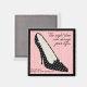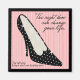 Calçado de bolinhas preta sobre fundo listrado rosa. Leituras: O calçado certo pode mudar sua vida. O esquerdo impede-o de se virar.