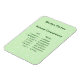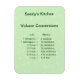 Este magente é bonito e útil. Ele apresenta um fundo que é verde-menta com espirais brancas sobre ele. Há um gráfico de conversão de volume que apresenta volumes dos EUA em Métrica e novamente. Perfeito para alguém com um livro de cozinha de outro país ou alguém que se mudou para outro país!