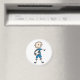 Um boneco de palito em um uniforme azul joga futebol em T-shirts, canecas, mousépias, botões e outros equipamentos de futebol que você pode personalizar no local com um nome ou outro texto.