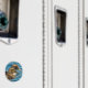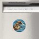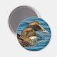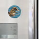 Pico de inverno entre homens e mulheres Par de Eider Comum no oceano Atlântico ao largo de Sandy Hook, Nova Jersey reproduzido em um ímã de geladeira redonda.