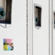- Abstrato retro pop, Magnet Quadrado. Olhos brilhantes com recortes únicos de tinta, de castanho a azul, amarelo e rosa. - Desenho digital original do Raphael Studio - "Stare". - design elegante, artístico e único