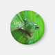 Fotografia do sapo verde (branco) sobre fundo verde da planta com a palavra "hey" (personalizável) impressa ao lado.