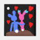 Dois almas de coelhos estão sentados em uma pedra perto da lua.