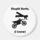 Um presente engraçado de moto de terra tem uma silhueta branca de um cavaleiro a passar pelas guiadeiras. Acima dele lê: "Dói Estúpido". E abaixo, "(Eu sei)." Todos nós fizemos coisas muito estúpidas nas nossas motos de terra, ou pelo menos percebemos isso naqueles preciosos segundos antes de atingirmos o chão, sermos atropelados pela nossa própria bicicleta, e nossos amigos se levantam para apontar e rir.