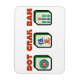 Um ímã para amantes Mahjong apresenta texto e azulejo para cada traje "Dot", "Crak" e "Bam"