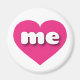 Este ímã apresenta um coração cor-de-rosa-quente vibrante contendo as letras maiúsculas, brancas e em negrito, arredondadas, uma abreviação lúdica para Maine, o estado do pinheiro.