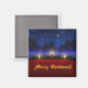 Uma cena de Natal tridimensional criou em Vue, com velas colocadas em vermelho em frente à garland de pinheiro acentuadas com ornamentos de vermelho e ouro. No fundo de neve estão árvores de abeto azul-esverdeado contra um céu fractal girando coberto por estrelas. Uma estrela brilhante solteiro domina o céu noturno. Em frente à decoração de férias está uma saudação brilhante de ouro Feliz Natal.
