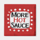 "Mais Molho Quente" é um design de texto fofo em vermelho com texto preto e vermelho, juntamente com uma forma de sotaque branca e pontos brancos texturizados ao seu redor.