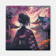 Gera computador Design einer Geisha em einem Kirschblüten Zauber. Abbildung einer Frau mit einer hübschen Hochsteckfrisur und Blüten im Haar welche einen Kimono trägt. Japoneses Design im AI - Estilo de Meia-Viagem. Sou Hintergrund Japanische Gebäude.
