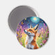 A majestic fox sits in a field of vibrant flowers, gazing up at the sky. Its beautiful red fur shines with white accents, and its pointy ears are alert. Butterflies flutter among the blossoms, surrounded by pink and purple hues. The fox rests gracefully in the long grass, encircled by the colorful flowers.