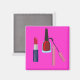 Este ímã tem vários itens de maquiagem batom, rímel e esmalte. Esta é uma design perfeita para promover sua empresa de cosmetologia, seu negócio pessoal de estilista ou distribuidor independente de cosméticos. Este design pode ser personalizado com o nome da sua empresa ou personalizado com a sua própria mensagem, número de telefone ou correio eletrônico exclusivo. Este design pode ser adquirido como está ou você pode usá-lo como um modelo para fazer seu design comercial exclusivo. Este produto também faz favoritos para festas de excelente!
