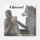 Depois de um duro de noite de trabalho é bom ter um frio com seu melhor amigo. Esta múmia e o seu amigo, o lobisomem, dizem "torcida" no seu bar local para celebrar os seus esforços noturnos. Aproveite as semelhanças que você compartilha com os outros dando um presente deste ímã de botão de arte fantasia representando a celebração honrada de compartilhar uma cerveja.